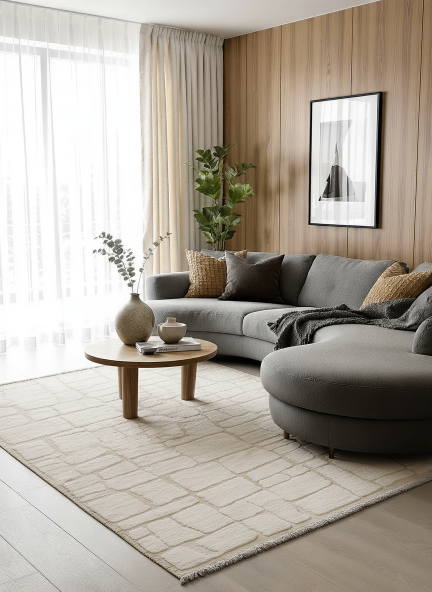 • Made from undyed wool, offering natural shading and subtle variations in tone, creating a unique, organic aesthetic.