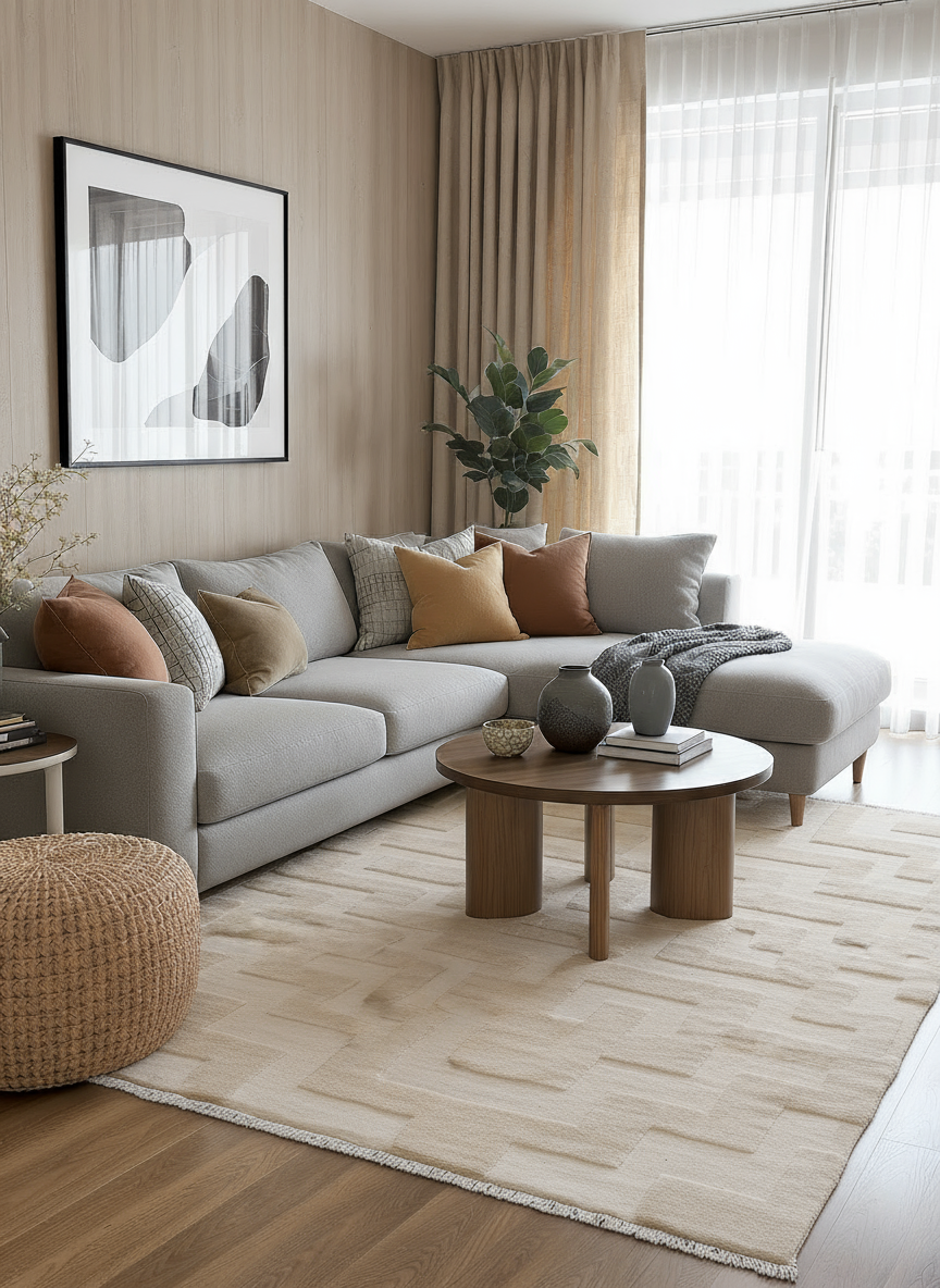 • Made from undyed wool, offering natural shading and subtle variations in tone, creating a unique, organic aesthetic.