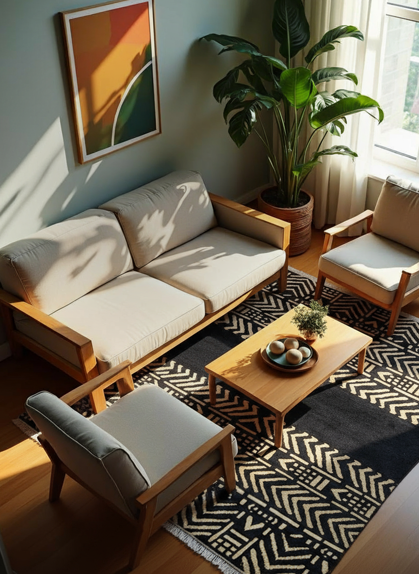 i was looking for a large carpet that would go well with my drawing room's furniture. came across this one and it matches perfectly!