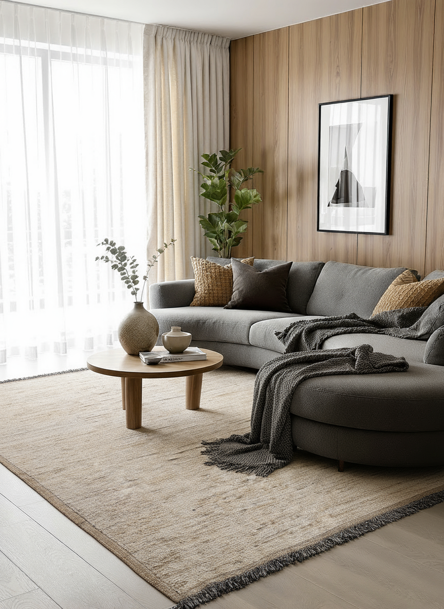 • Made from undyed wool, offering natural shading and subtle variations in tone, creating a unique, organic aesthetic.