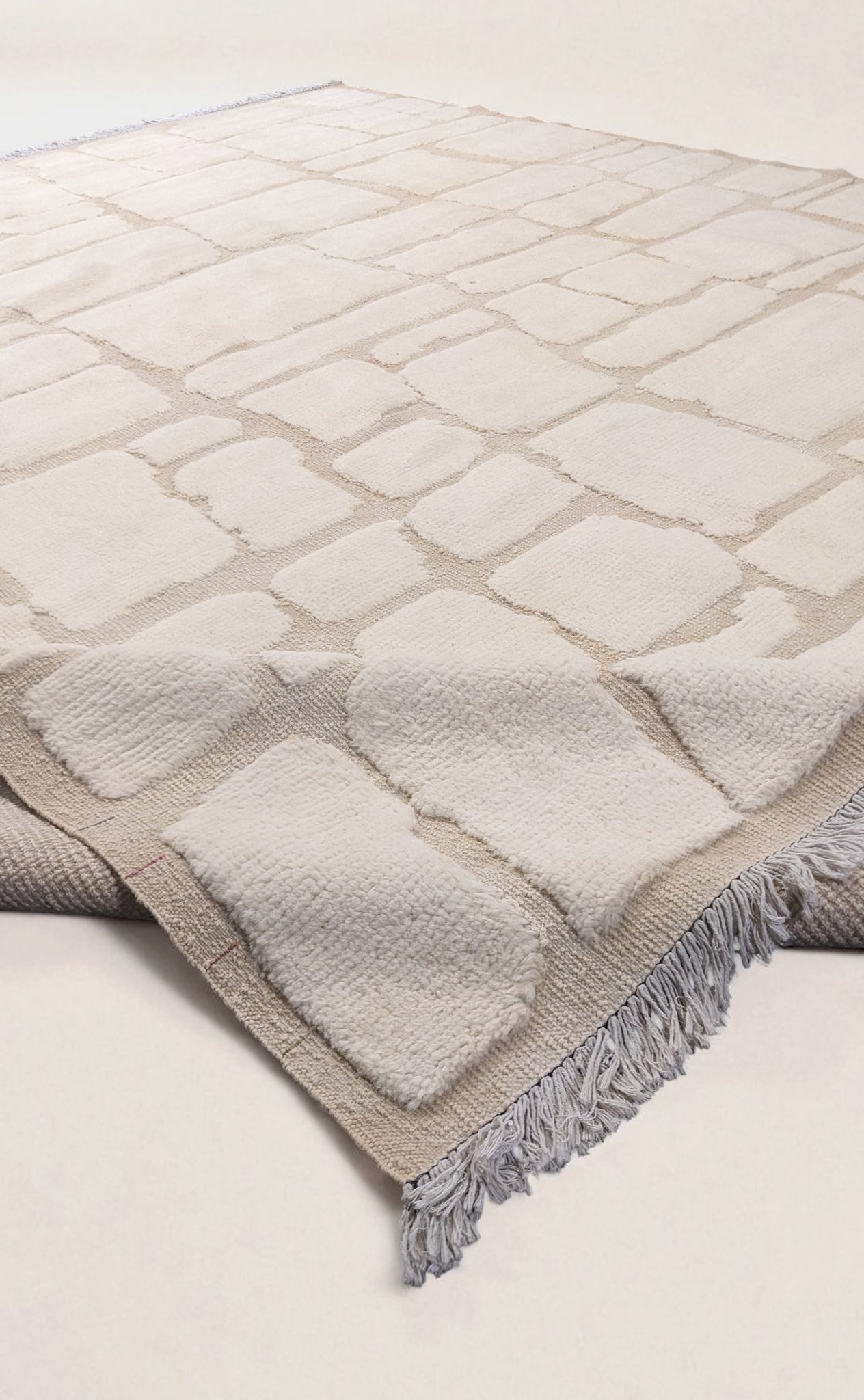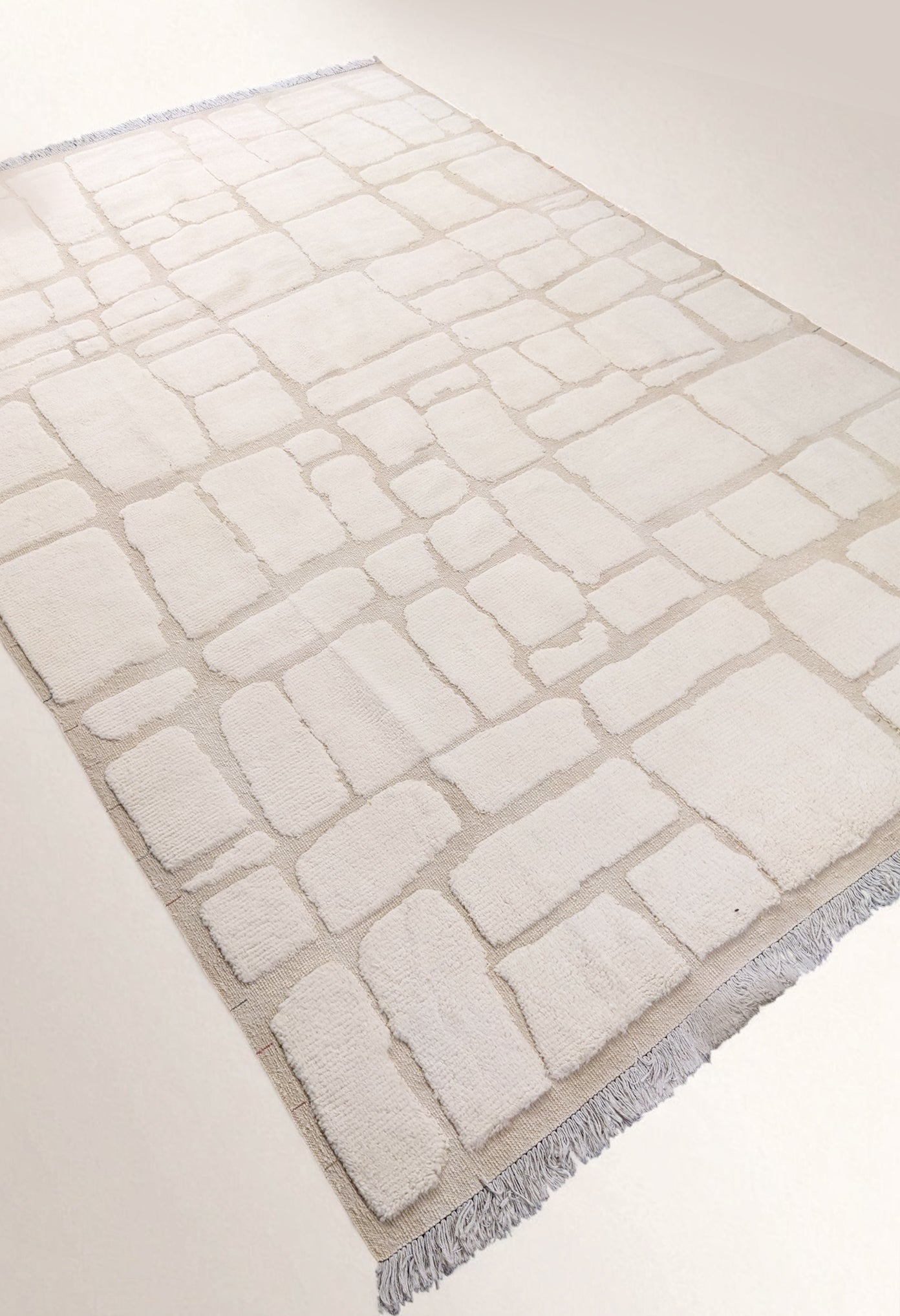 Expertly crafted and uniquely designed, the Modishic Abstract Beni Ourain Rug boasts a luxurious cobblestone pattern with a textured feel. Each piece is carefully hand knotted and carved from premium undyed wool, making it both durable and eco-friendly. this rug is the perfect size for adding a touch of elegance to any space.