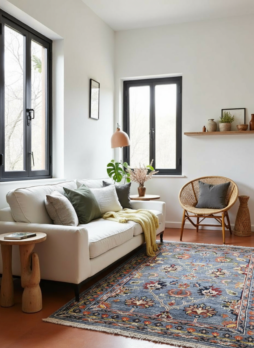 Handmade rugs by Ahsan Imam in natural and neutral tones, capturing the serene beauty of earthy desert landscapes.