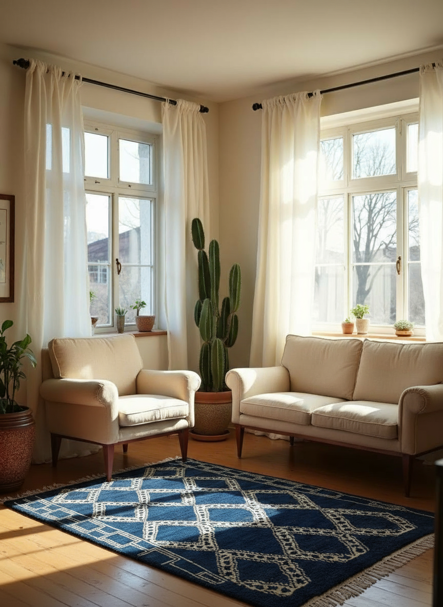 These rugs are renowned for their ability to create an illusion of space and light. Placing a white or beige rug in a room can make it appear larger and airier, ideal for smaller spaces or rooms with limited natural light.
